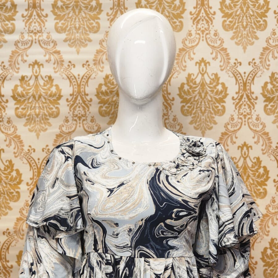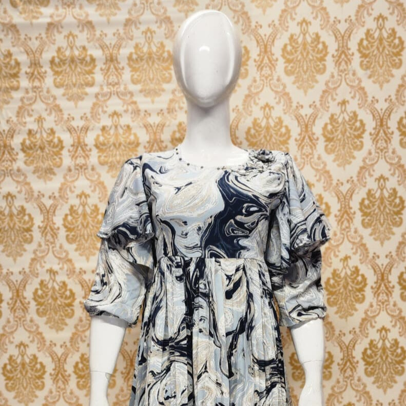 Turn heads with this chic and trendy marble print dress. Designed with statement puff sleeves and a flattering flowy fit, this dress is perfect for casual outings, brunch dates, or evening get-togethers. Its soft fabric ensures comfort while the artistic marble pattern adds a bold, stylish edge.